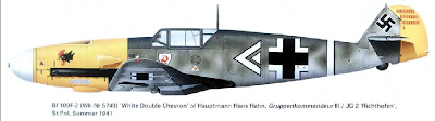 On November 1, 1942 was transferred, along with the rest of the II./JG 54 as Gruppenkommandeur, the Eastern Front. In the space of three months managed to add another 42 victories to his record. The December 30 Soviet aircraft shot down five (75-79) and January 1 was promoted to Major. The January 14, 1943 dropped no less than 7 fighter La-5 (80-86). The February 21, 1943 was assigned to the Eastern Front with the III./JG 54. They pulled down his unit number 108, a fighter La-5 which fell near Staraya Russa. However, his Bf 109 G-2/R6 (W. No. 13949) "<< Black" was hit in his left wing so he had to take land in enemy territory. Hahn was shot down by Soviet ace of Pavel Grazhdanikov the 169th IAP (13 victories, killed in action on April 5, 1943). A total of 560 combat missions reaching 108 aerial victories, including 66 against Western pilots Spitfire 53 and 42 against Soviet aircraft, including 7 Il-Sturmovik. Hahn was taken prisoner and released in 1950 and died on December 18, 1982 of cancer in München.